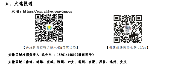四、福利 六险一金,法定节假日, 带薪年假, 周末双休,成长激励; 通勤班车,交通补贴,通话补贴,自助三餐,节日福利; 免费周转公寓,健身房设施,员工健康管理服务…… 生活与工作的平衡! (依工作地点当地情况不同标准略有调整,以沟通确认为准) 通过“新奥招聘”公众号回复“福利指南”查看详情,或可探索更多校招动态、锁定招聘资讯!