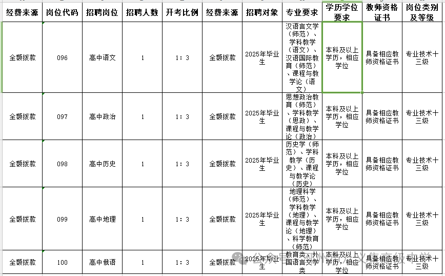 邳州市八义集高级中学面向2025年毕业生公开招聘编制教师5名(需求:语、政、历、地、俄)