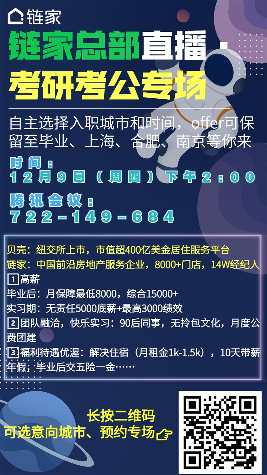 12月9日周四下午14:00链家总部直播线上专场宣讲会
