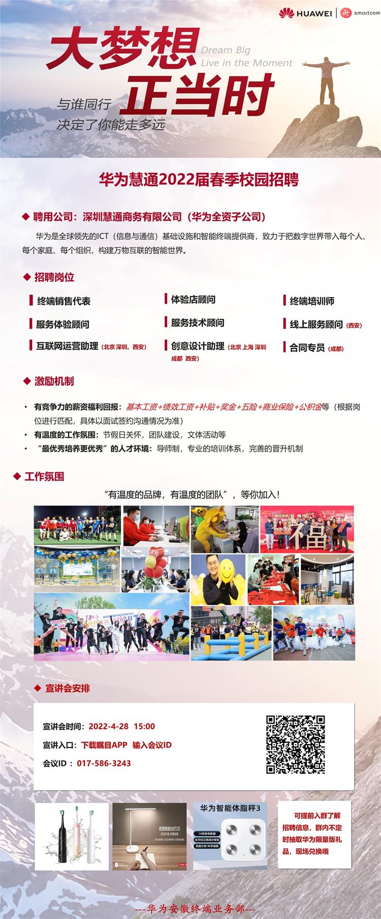 04月28日周四15:00华为慧通2022届校园招聘空中宣讲会